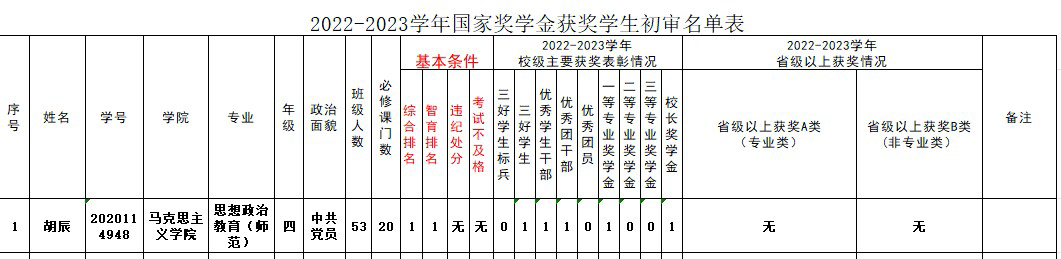 根据学校《关于做好2023年国家奖助学金评选推荐工作的通知》要求,按照《马克思主义学院国家奖助学金评审实施办法》规定,经班级推荐、学院评审工作小组评选、学院党委会议审议、学院党政联席会议决定,现对马克思主义学院2022-2023学年国家奖学金推荐候选人公示如下: