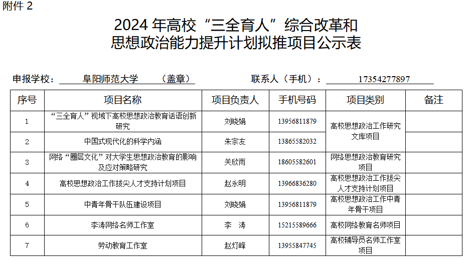 公示期内如有异议,请以实名书面材料的形式反馈至马克思主义学院办公室(205),联系电话:0558-2596209。