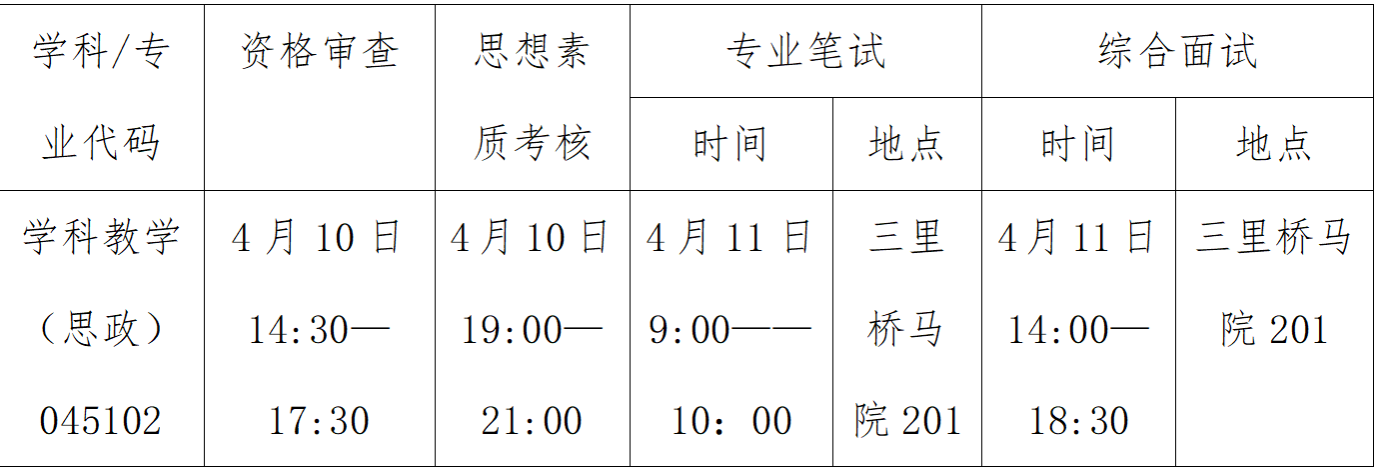 2.专业笔试。复试内容为《新编思想政治教育学原理》(沈壮海主编,中国人民大学出版社出版,2023版),满分为100分,实行综合性、开放性命题,考生现场限时作答,限时60分钟。