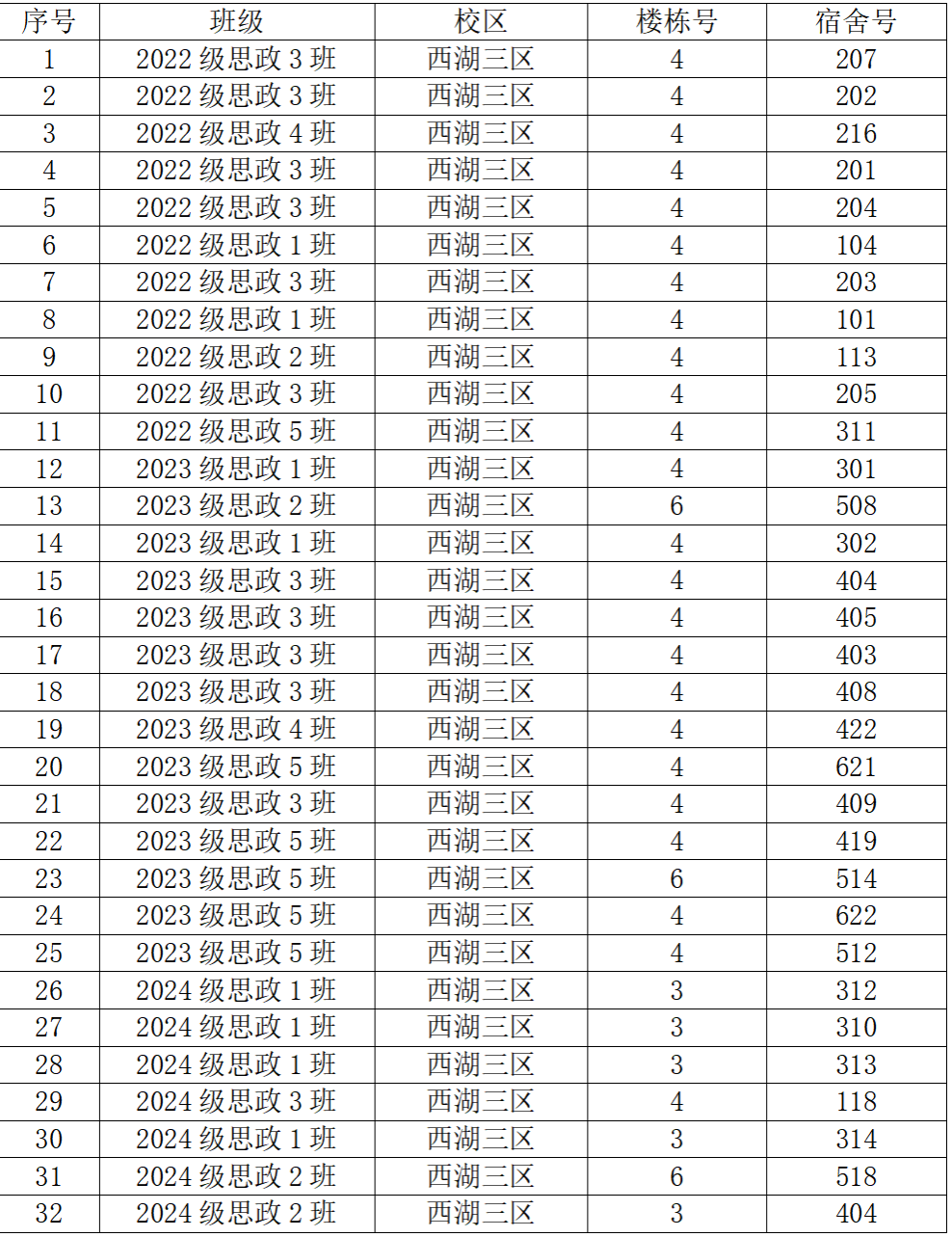 院级文明宿舍拟推荐宿舍(32个)