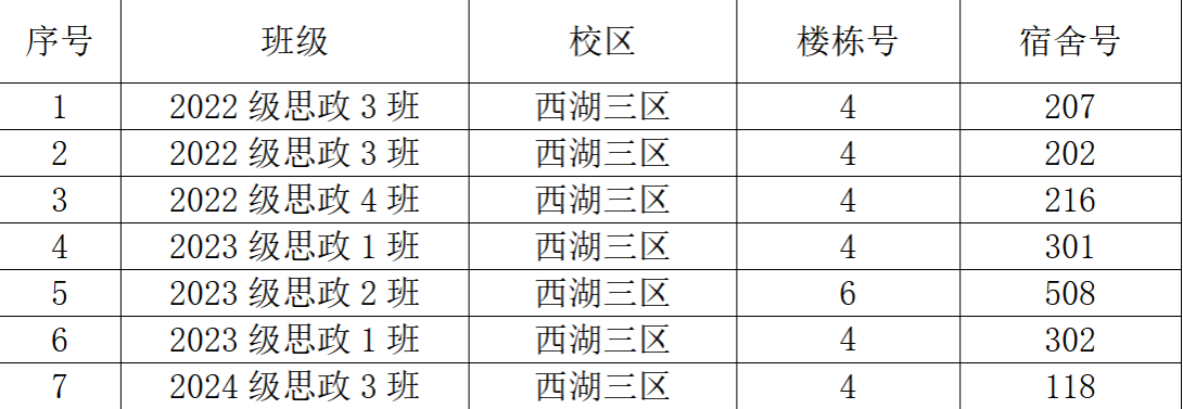 根据《<普通高等学校学生管理规定>(教育部 41 号令)阜阳师范大学实施办法》等文件精神和学院实际情况,学院根据环境卫生、文化氛围、文明礼仪、人际关系、学风舍风五个板块进行文明宿舍的现场评比打分,以此评分作为评选的依据,现就开展2025年马克思主义学院春季学期学生文明宿舍评比结果予以公示。
