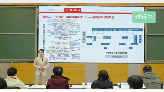 作为安徽省“四史”教育教学团队骨干成员、高校思想政治工作中青年骨干队伍建设项目成员,付羿慧积极报名参加大赛,精心准备,紧紧围绕“中国近现代史纲要”课程,针对教学痛点,撰写了“中国近现代史纲要基于4+6+1教学创新与实践”的课程创新报告,提出了“打造四美课堂—形成六化线上线下混合式教学模式—创建沉浸式游戏化课程”的创新思路;积极开发多元化信息资源,实现学生沉浸式学习;创新教学方法,将课堂教学与社会实践有机结合,培育学生核心素养。付羿慧在决赛中充分展现出马克思主义学院良好的教学风貌。