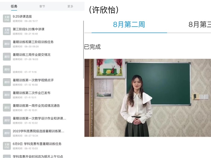 学院高度重视师范生专业技能培养。为迎接本次比赛,学院组建指导教师团队、制定培训方案、层层选拔、精致打磨,并且对选手进行长时间的技能训练。指导教师团队协同合作,全程参与学生改稿、演练、录制参赛作品、线下比赛演练等各个环节。从院赛、校赛再到省初赛,经过选手与指导教师的不懈努力,许欣怡以各环节比赛一等奖的成绩成功入围线下决赛。在现场决赛环节,许欣怡教学过程设计科学,教学方法新颖独特,答辩时机智沉稳,表现出色,取得小组第一名的好成绩。此次比赛取得的优异成绩充分也展现了我院思政专业师范生扎实的专业知识与良好教学技能。