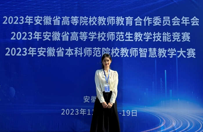 2023年11月17日—19日,2023年安徽省高等学校师范生教学技能竞赛暨第五届长三角师范生教学基本功大赛选拔赛在淮北师范大学成功举行。经过激烈角逐,我院学子2021级思政专业许欣怡同学在本次比赛中荣获一等奖,取得优异成绩,并将代表安徽省出征2023年第五届长三角高等院校师范生教学基本功大赛。