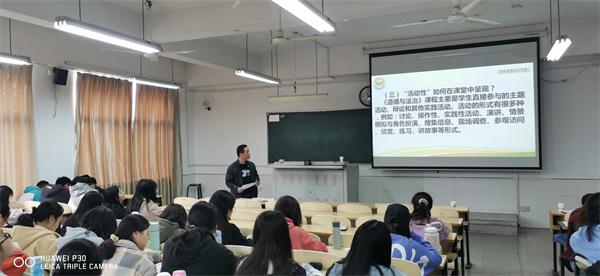 结合新《道德与法治》课程内容,刘启伟老师首先从内容编排、素材选取、栏目设计等方面详细向我们介绍新教材编写情况。随后他从“如何评价一堂好课”及“对青年教师的几点建议”等方面阐述自己作为一名一线思政教师的心得体会。他指出,在授课中我们需注重生活化、开放性和创造性,设置好课堂组织形式,不断促进教学水平的提升。同时刘启伟老师也向同学们提出几点建议,如抓住一切机会、广交良师益友、心胸开阔等。讲座最后,宋俊义老师做总结发言,并对刘启伟老师的到来表示衷心的感谢。