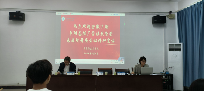 为了贯彻落实党的教育方针,加强劳动教育,增强学生的劳动意识,引导广大学生崇尚、热爱和尊重劳动,5月9日下午学院在201会议室举办榜样人物进校园活动,邀请阜阳师范大学校友、安徽中烟阜阳卷烟厂劳模武莹莹开展劳动精神宣讲。会议由学院党委副书记王刚主持,学院本科生和研究生代表参加。