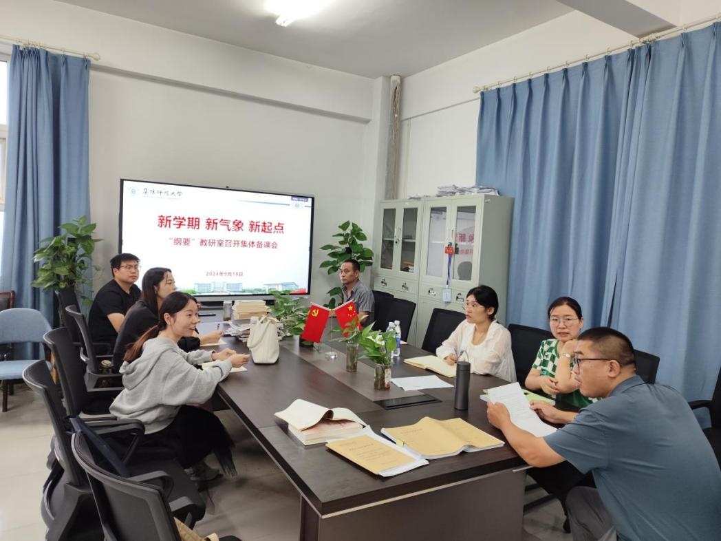 为深入学习贯彻党的二十届三中全会精神,深刻领会习近平总书记关于全面深化改革的重要论述,切实做好三中全会精神“三进”工作,讲深、讲透、讲活“中国近现代史纲要”课程,持续提升学院思政课教学育人实效,上好开学第一课,9月18日下午,“纲要”课教研室在学院308会议室召开集体备课会,主题是“党的二十届三中全会精神融入课堂教学”。会议由“纲要”课教研室主任梁华玮主持,全体任课教师参会。