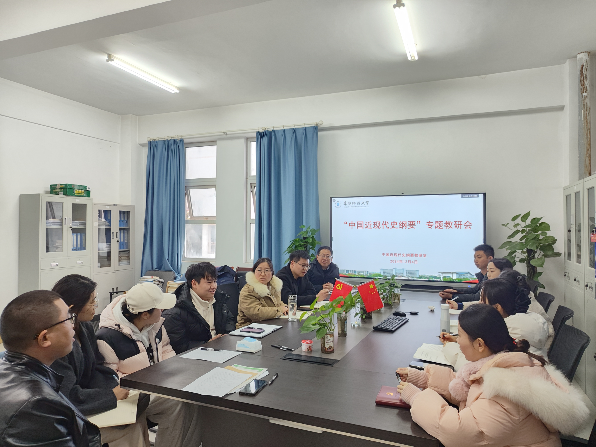 为学习贯彻落实习近平总书记考察安徽重要讲话精神,进一步深入学习贯彻党的二十大和二十届三中全会精神以及全国教育大会精神,进一步把思政课的道理讲深、讲透、讲活,提升中国近现代史纲要课的教学效果,12月4日,马克思主义学院中国近现代史纲要教研室在学院308室召开专题教研会,围绕学习贯彻习近平总书记考察安徽重要讲话精神、思政课教学方法改革、期末考试工作部署三个方面展开。会议由教研室主任梁华玮主持,教研室全体教师参加会议。