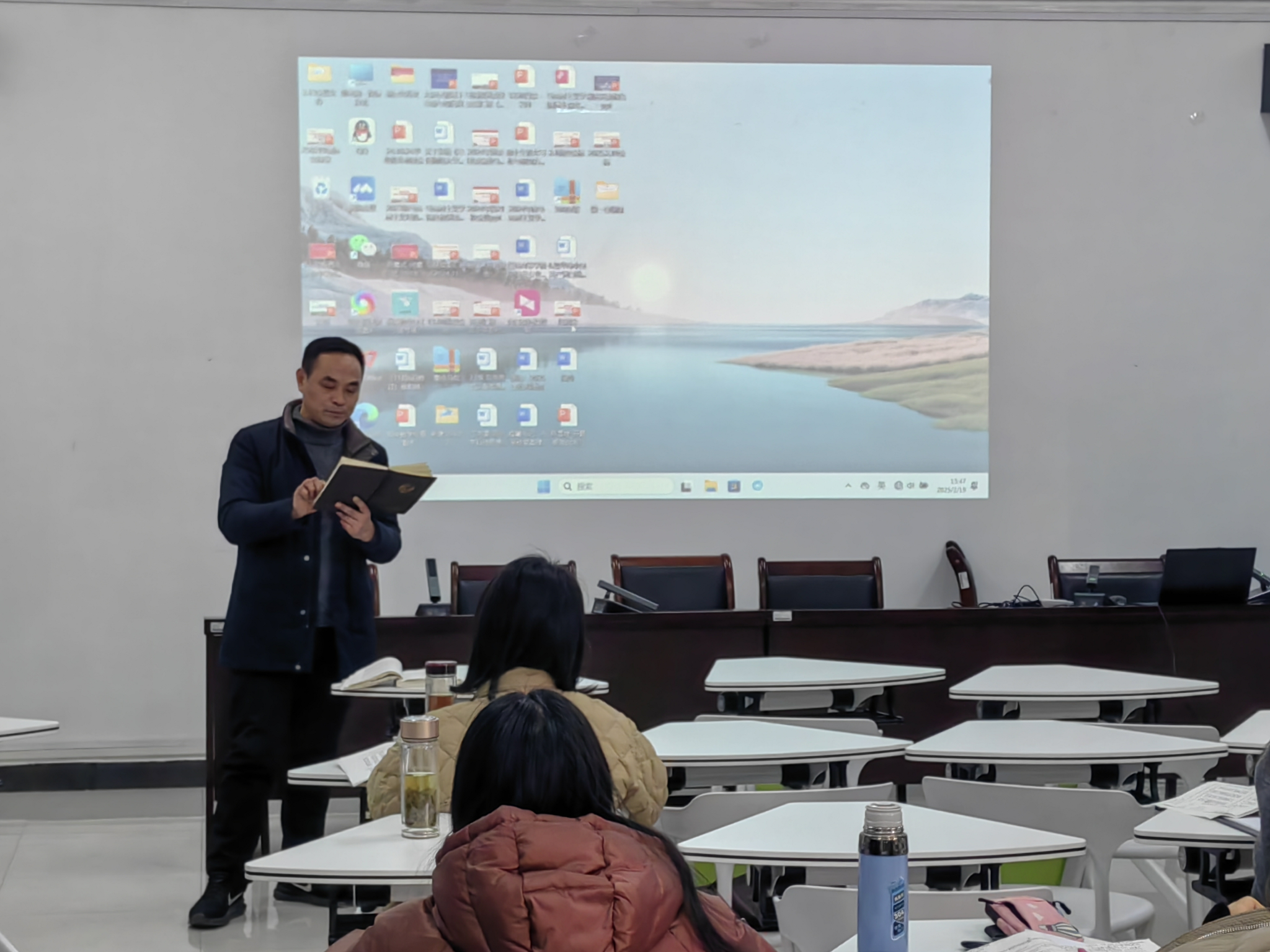 最后,郝海洪结合教研室新学期的教学工作作了具体要求。他强调,要学好用好《“习近平新时代中国特色社会主义思想概论”参考讲义(试用版)》,并与统编教材、配套课件,《大学生思想热点面对面》通俗读物贯通起来,坚持把理论“讲准”作为前提、“讲深”作为核心、“讲透”作为关键、“讲活”作为导向,不断增强思政课育人效果,努力把习近平新时代中国特色社会主义思想概论课打造成为思政课“金课”。