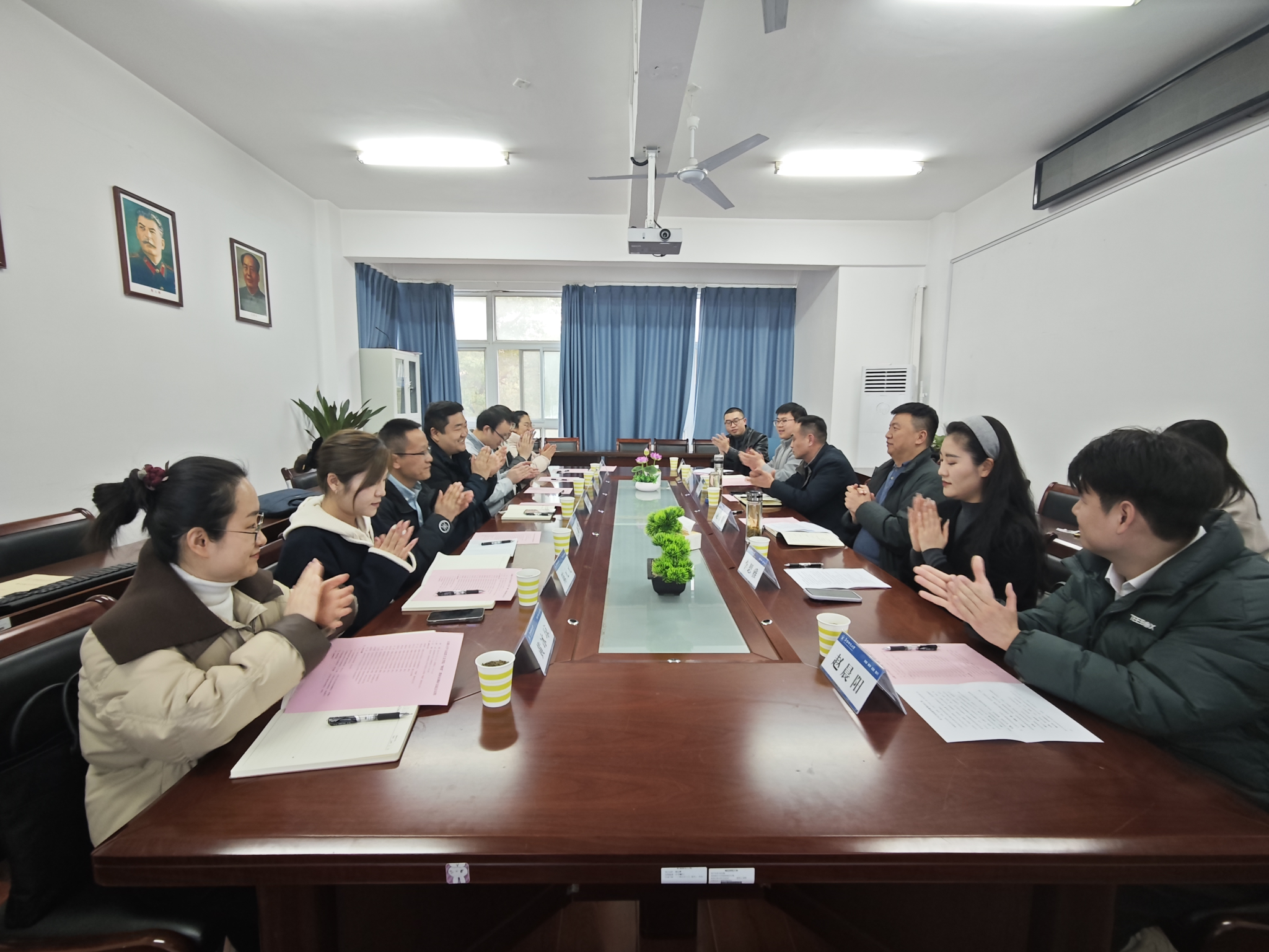其次,李全文、赵晨阳、李思雅、李凯分别就思政课内涵式发展、红色实践考察、思政课教学竞赛、青年教师培养等内容汇报做法、经验,双方围绕“纲要”课教学过程中遇到的难点、痛点、堵点展开深入交流。会上,双方还就中国近现代史纲要的实践教学、课程设置、教学方法、考核形式、思政课“大练兵”等方面进行了广泛而深入的交流。