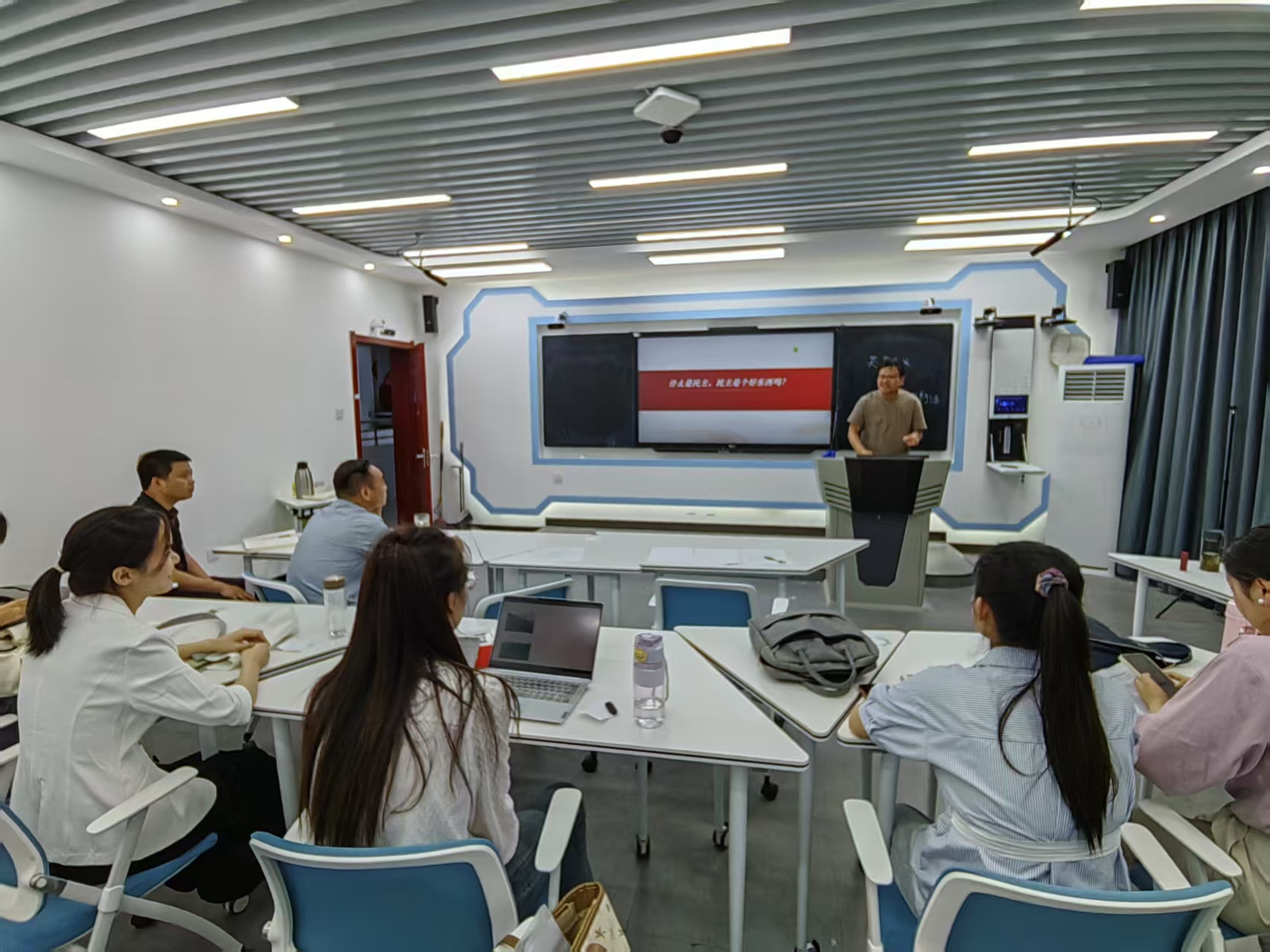 5月10日,“大练兵”活动在化材楼一楼多功能智慧教室举行,此次竞赛以“上好一门课”为理念,由教学设计、课堂教学两部分组成。习近平新时代中国特色社会主义思想概论课程教研室根据教师自愿报名原则,在严格选拔、精心打磨基础上,遴选、推荐了4名青年教师代表教研室参赛。4名青年教师在比赛过程中表现优秀,其中李敏荣获一等奖,汝晴荣获二等奖,李曼玉、王文燕荣获三等奖的好成绩。
