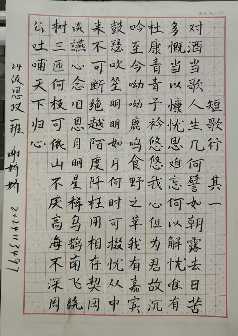 15日,学生们以班级为单位组织开展硬笔书法比赛、板书设计比赛,加强了师范生基本功的训练,强化了学生的从教技能。