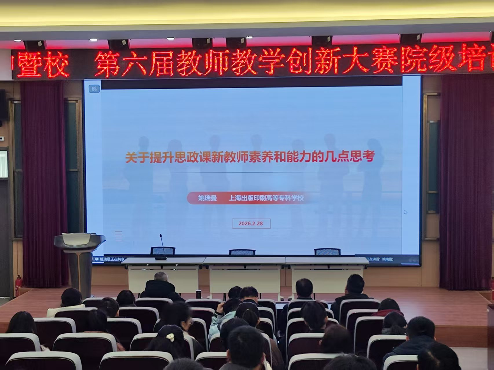 为深入学习贯彻党的二十届四中全会精神,落实立德树人根本任务,提高教师教书育人能力,深化思政课改革创新,根据校第六届教师教学创新大赛通知精神和“1345”思政课教学改革要求,2月28日,我院在三里桥校园C楼多功能报告厅成功举办学习贯彻党的二十届四中全会精神暨校第六届教师教学创新大赛院级培训会。学院党政领导,全体专职教师参加培训,培训会由学院党委副书记、院长朱宗友主持。