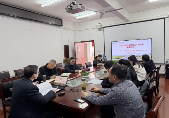 为深入学习贯彻习近平新时代中国特色社会主义思想,扎实推进生态文明建设理论学习走深走实,提升思想政治理论课教师马克思主义理论素养,高质量上好习近平新时代中国特色社会主义思想概论课,2026年4月1日下午,习近平新时代中国特色社会主义思想概论课教研室组织开展《习近平生态文明文选》(第一卷)学习活动。院长朱宗友、副院长赵永明参加学习会。教研室主任郝海洪作专题报告。
