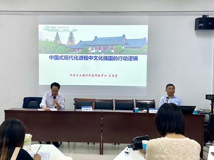 为深入学习宣传党的二十大精神,2023年4月17日,马克思主义学院邀请南京师范大学马克思主义学院王永贵教授,作题为《中国式现代化进程中文化强国的行动逻辑》的学术报告。报告会在阜阳师范大学西湖校区三里桥校园201会议室举行,马克思主义学院党委书记高思杰,党委副书记、院长闫成俭,党委委员、副院长朱宗友,正处级干部夏小华,学院本科生、研究生和教师参加会议。会议由闫成俭主持。