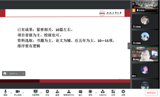 罗健对于科研项目的选题技巧与论证思路进行了经验分享。他指出,参与项目申报时首先要克服难中不做、只听不写、光写不问、仅看不思、作完不改、形神不兼的错误观念和做法;选题要抓住眼球,要有时代意义、创新意义、学术意义;选题来源可以出自于学术前沿、学术问题、教学问题、自我基础、自我兴趣;最后,罗教授以自身的申报项目课题为例,深入剖析项目申报的各个细节。