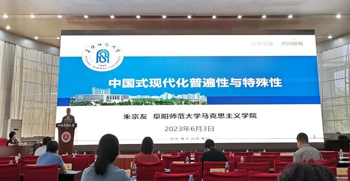 会上,朱宗友作了题为《中国式现代化普遍性与特殊性》的大会发言,主要从现代化的普遍性、中国式现代化的普遍性和中国式现代化的特殊性三方面阐述了中国式现代化的鲜明特色,得到与会专家学者和青年学生的高度关注。