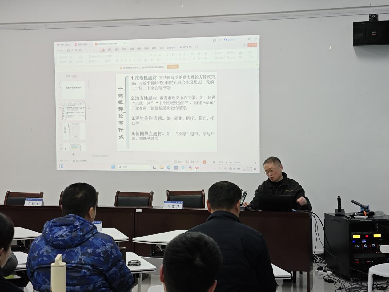 为进一步加强学院教师撰写资政报告和党报党刊文章的能力,2月28日下午,马克思主义学院邀请中共阜阳市委党校校委委员、科研处处长朱振辉教授和《阜阳日报》王笑丹编辑作资政报告和党报党刊文章写作培训会,学院党委书记朱明山,部分青年教师和全体研究生聆听了报告,报告会由副院长赵永明主持。