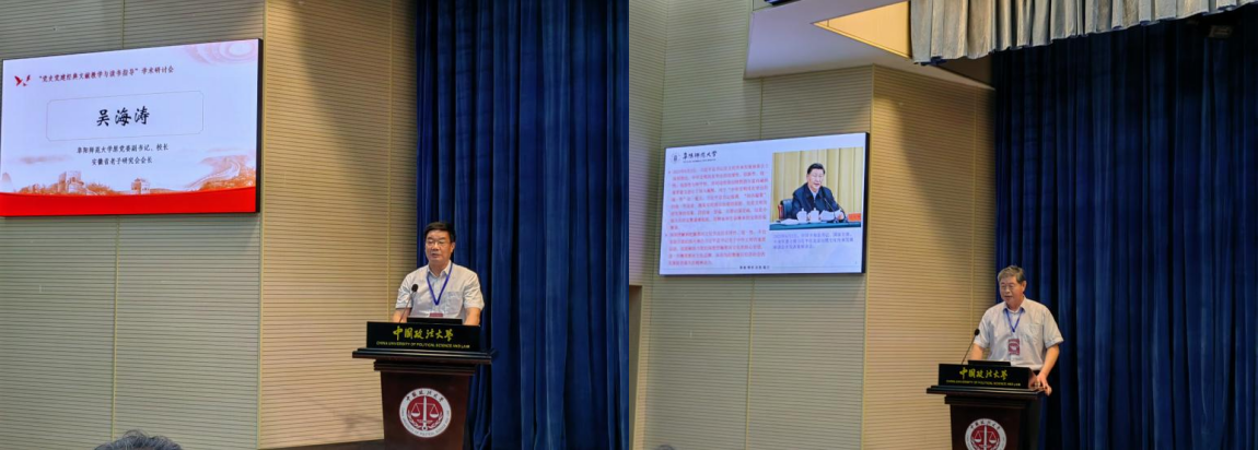 为深入学习贯彻习近平总书记关于党的历史的重要论述,进一步深化对中共党史党建学科建设与人才培养的认识,掌握党史党建经典文献的研读方法,6月15日,由中国高等教育学会马克思主义研究分会、中国李大钊研究会、中国政法大学马克思主义学院、阜阳师范大学马克思主义学院联合主办的“党史党建经典文献教学与读书指导”学术研讨会在中国政法大学海淀校区举行。北京大学、清华大学、中国人民大学、中国政法大学、中央民族大学、中央社会主义学院等百余所院校师生1000余人参加线下线上会议。阜阳师范大学吴海涛教授、梁家贵教授、武峥教授,2024级马克思主义基本原理专业硕士研究生贾凡应邀线下参会。