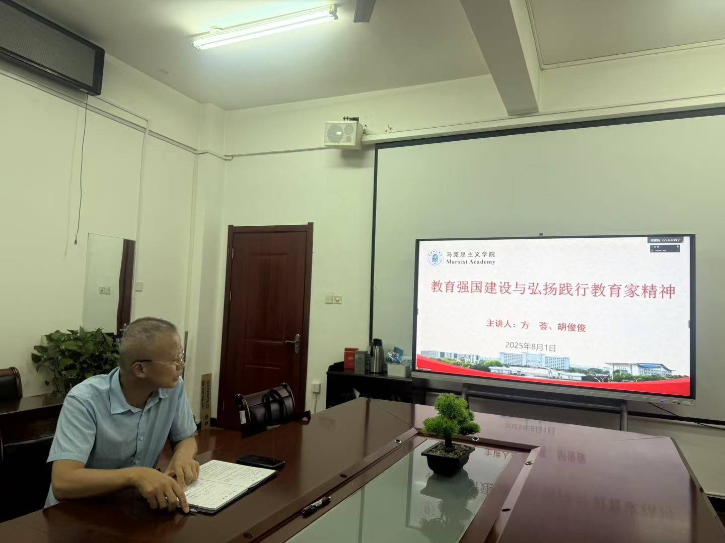 8月1日晚,学院在211会议室召开“教育强国建设与弘扬践行教育家精神”线上线下学术报告会。学院院长朱宗友、部分教师及2025级硕士研究生参加报告会。报告会由理论宣讲与社会服务部主任李全文主持。