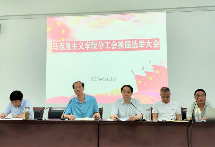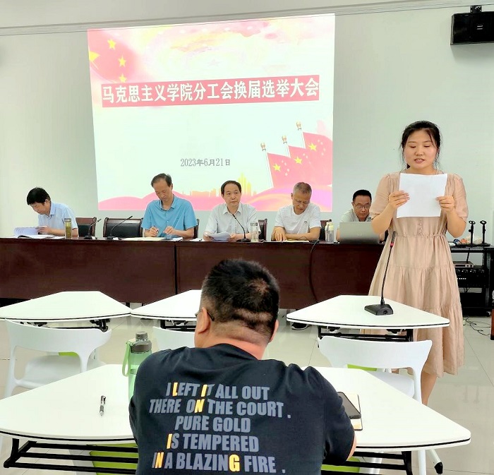为推进工会工作顺利展开,根据校工〔2023〕8号《关于全校基层分工会集中换届工作的通知》精神,2023年6月21日下午,马克思主义学院召开分工会换届选举大会。马克思主义学院党委书记高思杰,党委副书记、院长闫成俭,正处级干部夏小华,党委委员、副院长朱宗友,工会换届工作筹备组成员及63位工会会员参加会议。闫成俭主持会议。