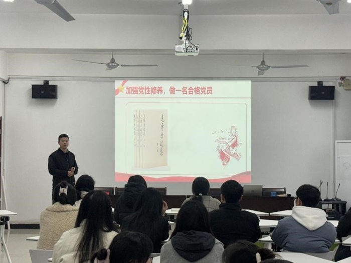 为深入学习贯彻习近平新时代中国特色社会主义思想,全面贯彻落实党的二十大精神,教育和引导全体党员坚定理想信念,提高党性修养,激发党员队伍活力。3月25日,马克思主义学院思想政治教育专业学生党支部举办以“加强党性修养,做一名合格党员”为主题的党课。支部全体党员参与。活动由支部书记宁焱主持,支部纪检委员张涛主讲。