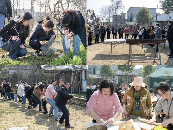 上午九点,老师们抵达颍东区胡同口生态家庭农场,开展了系列活动。大家三两成群,在园区大棚内开始了饶有兴致挖荠菜比赛。在熟悉教师的悉心指导下,老师们很快熟练掌握了挖荠菜的技巧,不一会儿功夫,大家收获满满,田野里充满欢声笑语。随后在一处空旷的场地上,老师们举行了小型文娱活动,唱红歌、拔河比赛、转呼啦圈等,每一位老师的脸上都露出了欢乐洋溢的笑容。