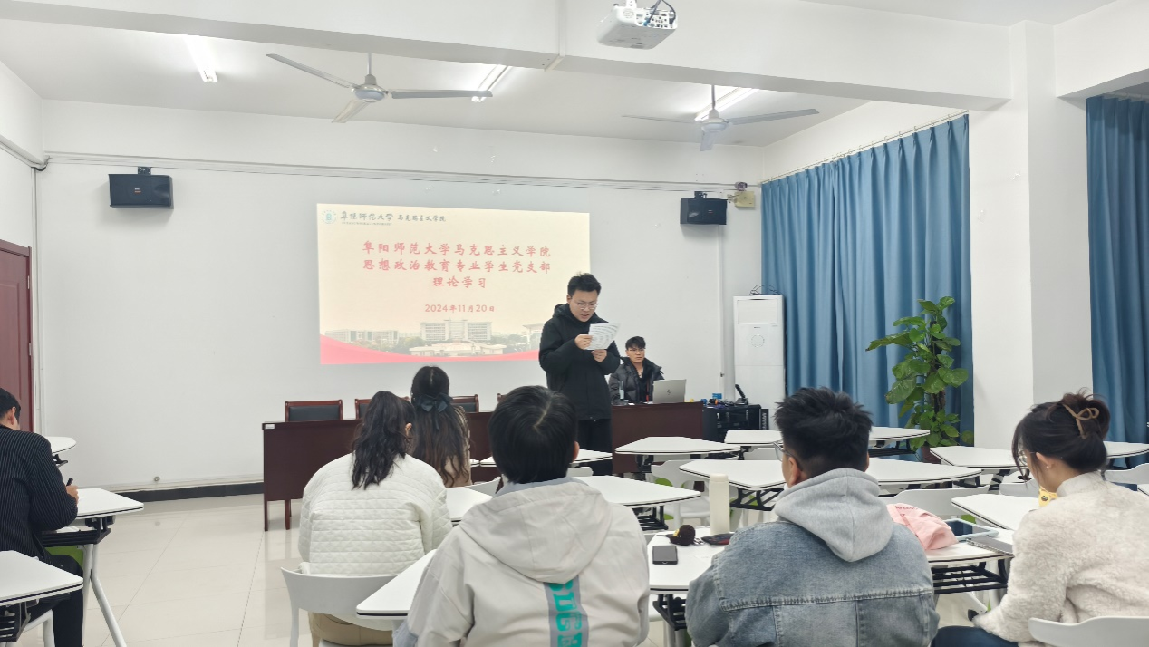 11月20日下午,马克思主义学院思想政治教育专业学生党支部在学院201会议室召开党员大会,开展支部理论学习、讨论接收丁欣然等八位同志为预备党员及毕业生党员就业工作推进会。支部全体党员参加会议,大会由学生党支部书记宁焱主持。