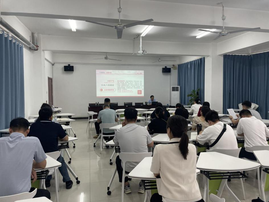 党支部副书记郝海洪带领全体党员系统学习中央八项规定精神,从制度背景切入,重点围绕“改进调查研究、精简会议活动、精简文件简报、规范出访活动、改进警卫工作、改进新闻报道、严格文稿发表、厉行勤俭节约”八项具体要求展开讲解,并通过政策图解、数字解读、关键词提炼等方式,系统阐释了制度框架、执行要点与精神内涵。