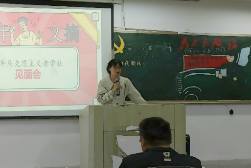 胡明明结合自己在思政专业的学习经历,要求新生同学在青马学社的舞台上展现自己、锻炼自己,踏实学习专业知识,笃信马克思主义,以热情饱满的精神状态,积极投入学社工作中。