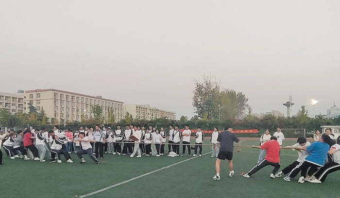 为贯彻习近平总书记“体育承载着国家强盛、民族振兴的梦想”的重要思想,促进学生德智体美劳全面发展,推进五育并举,同时进一步丰富学生们的军训生活,发扬团队精神,增强班级凝聚力,加强各班同学间的交流,使我院学生更加团结一心,马克思主义学院于10月18日在西湖三区操场举行了“比军训之势,赛新秀之气”新生拔河比赛。