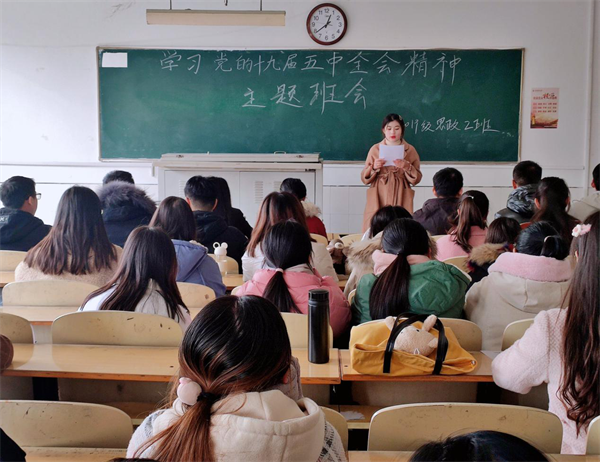 马克思主义学院积极引导各班级组织开展学习十九届五中全会精神主题班会,加强宣传教育,确保全员覆盖。11月27日,马克思主义学院各班级组织开展“学习党的十九届五中全会精神”主题班会,辅导员黄宝老师也在各班级中认真聆听了班级代表学习党的十九届五中全会精神心得体会。同学们表示,在国家发展的关键时期,作为新时代中国青年,要努力学习新知识,练就过硬本领,为夺取全面建设社会主义现代化国家新胜利贡献青春力量。