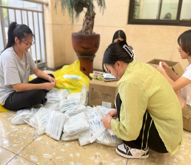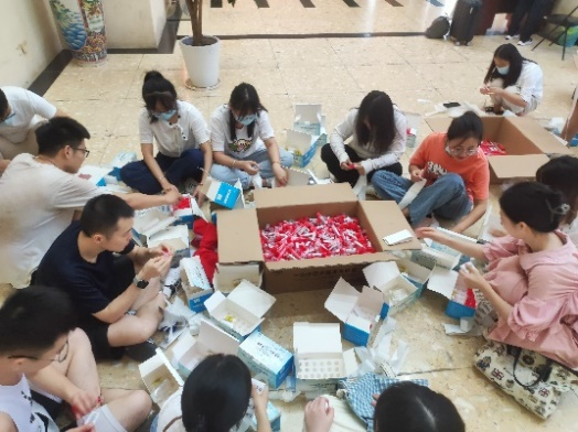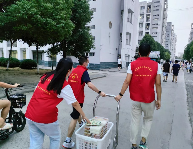 迎新志愿活动结束后,他们又和其他党员一起投入到校园疫情防控志愿服务工作中。从帮助医护人员搬运、分发物资,贴试管标签,布置场地,到给医护人员准备口罩防护服、医用棉签,再到给学生扫安康码、秩序维持,部分学生党员还参与给隔离学生送餐,到处都能看到他们忙碌的影子。