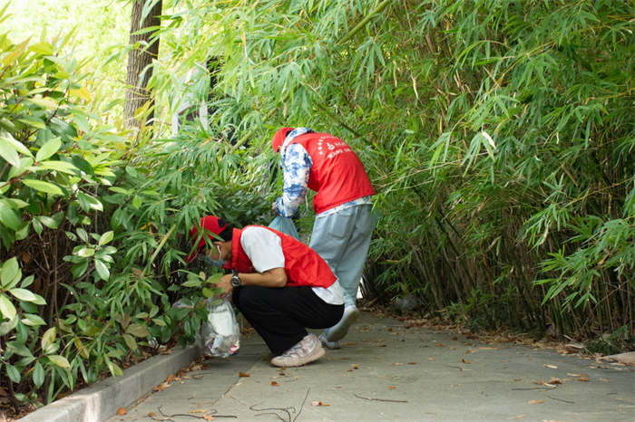 像张家雨、徐宇婷一样,200名志愿者分散在校园各个区域,楼拐墙角、围墙栅栏、广场操场、喷泉绿植……不留下一点垃圾,不放过一个死角。