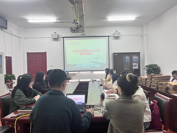 2023年3月8日,马克思主义学院在西湖校区三里桥校园211会议室开展学生会工作人员和团支部书记2022-2023学年第一学期工作述职评议考核。团总支负责人宁焱主持,学生会主席团、各部门负责人及各班级团支部书记参会。