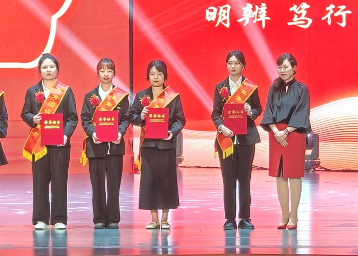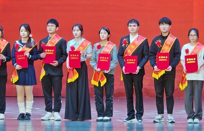 会上,我院学生胡辰、唐成、杜杭菊、陈梦瑶、张愚非、冯翠、卢传慧、杜程晨、李想等同学依次上台领奖,分别领取国家奖学金、校级十佳文明班级、校级十佳文明宿舍、共青团优秀团支部、共青团省级奖项、三好学生标兵、自胜奖学金、校级文明宿舍、校级文明班级等奖项。