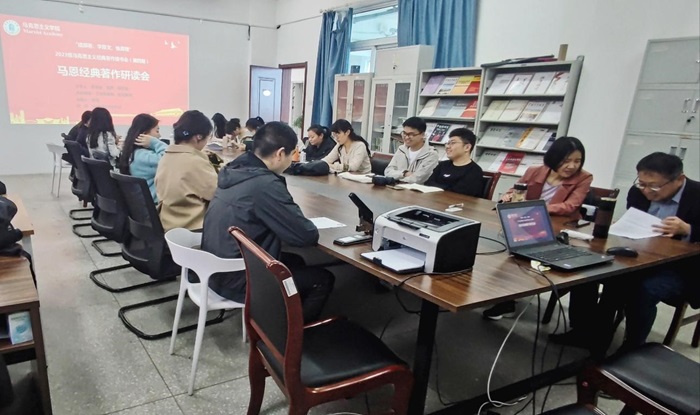 为激发学生对经典著作阅读的兴趣,促进师生间的学术交流,4月28日下午,院研究生会协助2023级研究生在三里桥校区105会议室举办第四期“马克思主义经典著作读书会”,2023级全体研究生参会,于文善、张月两位教授与会指导,徐芮同学主持会议。