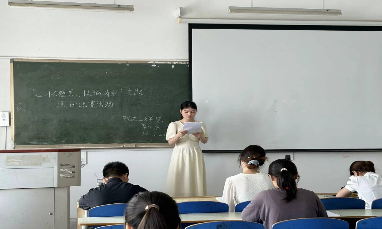 为深入贯彻学习党的二十大精神,特别是习近平总书记关于教育的重要论述,坚持把促进家庭经济困难学生成长成才作为学生资助工作的出发点和落脚点,通过加强对受助学生的诚信教育、感恩教育和励志教育,引导他们树立正确的消费观和价值观,增强社会责任感。马克思主义学院于5月25日举办“心怀感恩,以诚为本”主题演讲比赛活动。