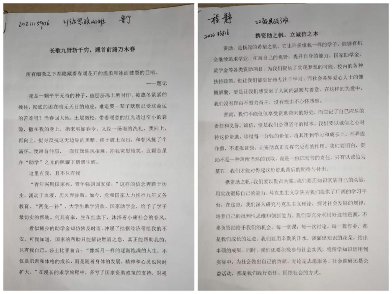 为深入贯彻落实习近平总书记关于教育的重要论述,落实立德树人根本任务,进一步提高学生诚信意识,增强资助育人成效。马克思主义学院于五月至六月开展“资助诚信教育”主题系列活动,活动开展期间让受助学生切实领悟到了诚信的重要性,取得良好教育实效。
