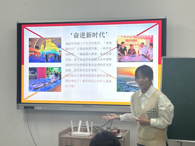 王卓凡同学则选取“奋进新时代”为主题,凭借对教材知识的深刻理解,创设了多个贴合学生实际的教学情境,让学生在熟悉的场景中深切感受到新时代的奋进力量。