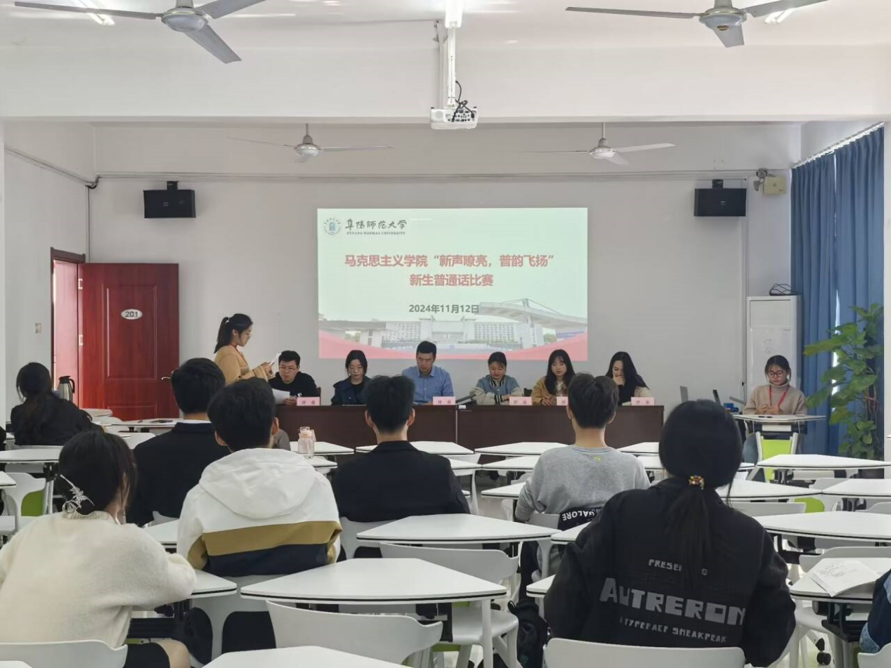 为深入学习贯彻习近平新时代中国特色社会主义思想,传承弘扬中华优秀传统文化的深厚内涵与时代价值,提高学生普通话水平,马克思主义学院于11月12日在201会议室举办“新声嘹亮,普韵飞扬”新生普通话比赛。