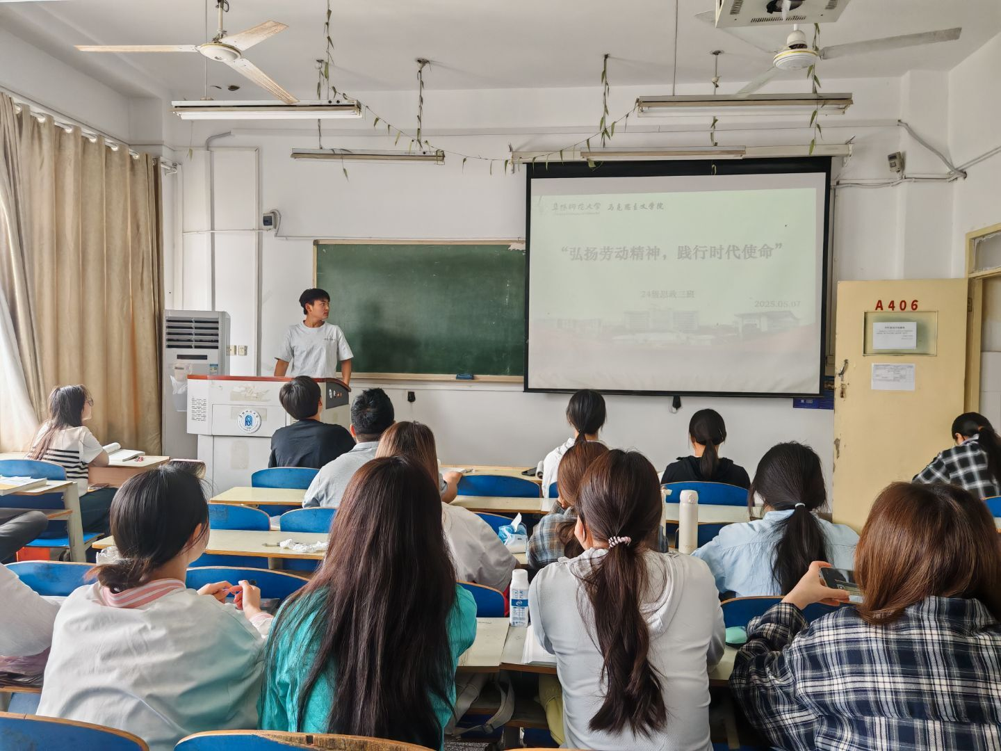 为深入贯彻落实习近平总书记关于劳动教育的重要论述,响应学校2025年学生劳动教育宣传周号召,5月7日下午,马克思主义学院2024级思想政治教育三班在马院教室举办“劳动筑梦新时代,青春奋斗正当时”主题班会。学生围绕劳动精神内涵、实践路径及时代价值展开深入探讨,以思想碰撞凝聚劳动育人共识。