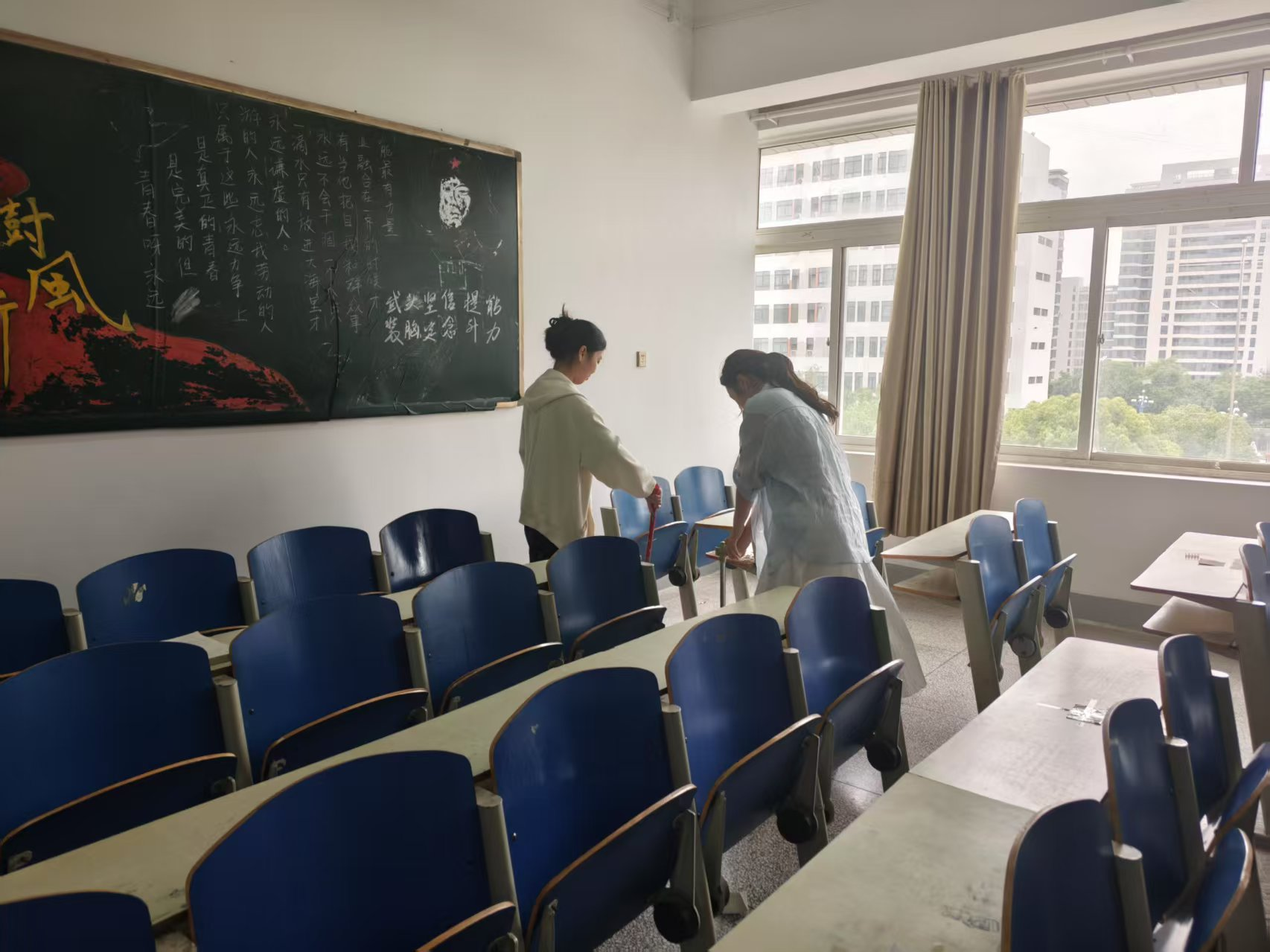 活动中,志愿者们热情高涨、分工明确,以饱满的干劲投入到教室清洁工作中。大家手持扫帚、抹布、拖把等工具,对教室桌椅、地面、讲台、黑板等区域进行全方位清扫。有的同学仔细擦拭桌椅缝隙中的灰尘,有的认真清扫地面杂物,有的专注整理讲台物品,还有的对卫生死角进行细致清理。在大家的共同努力下,原本整洁的教室更加焕然一新。