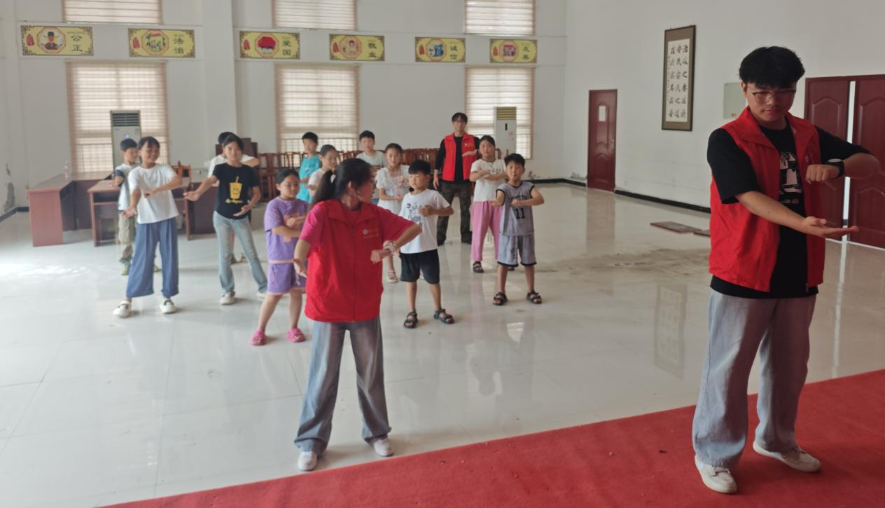 8月11日-16日,学院学“习”路上:爱国主义教育实践团在指导老师张涛的带领下,赴阜阳市太和县蔡庙镇史庄村开展为期五天的暑期三下乡社会实践活动。实践团聚焦于美德课堂、爱国教育、体育实践、素质拓展等方面助力学生德智体美劳全面发展。