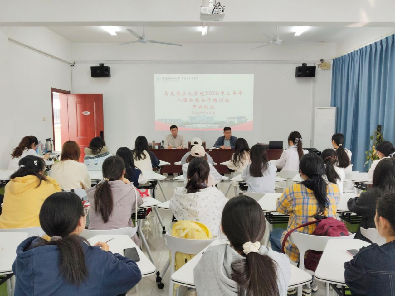 为深入学习贯彻习近平总书记关于青年工作的重要思想,严把团员发展质量关,强化入团积极分子思想引领与政治素养,4 月 15 日,阜阳师范大学马克思主义学院 2026 年上半年入团积极分子培训班开班仪式在 201 会议室隆重举行。学院党委副书记徐朝东、院团学负责人张涛及全体入团积极分子参加仪式,仪式由张涛主持。