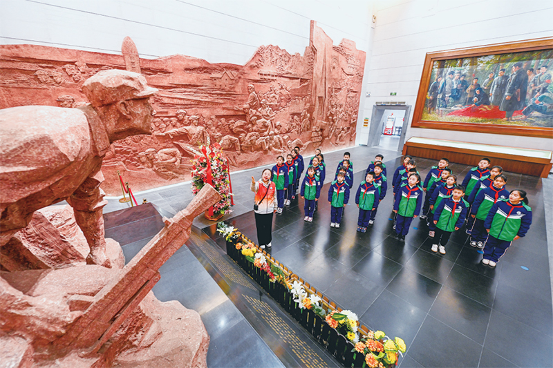 2023年12月12日,江西省南昌市松柏学校教育集团朝阳校区组织少先队员,开展以“追寻红色足迹 厚植爱国情怀”为主题的教育活动,增强勤奋学习、报效祖国的责任感使命感,让革命薪火代代相传。图为当日在江西省革命烈士纪念堂,朝阳校区的老师为孩子们上爱国主义教育思政课。 中新社发 鲍赣生/摄