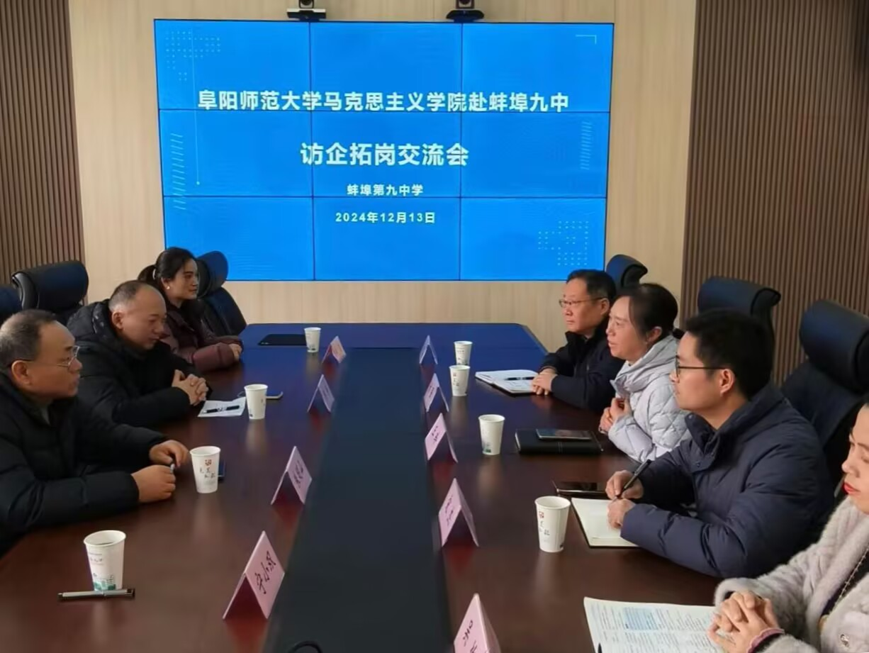 为全面贯彻落实党中央、国务院关于毕业生就业工作的决策部署,拓宽学生就业渠道,提升人才培养质量,12月13日,马克思主义学院党委书记朱明山率队一行四人赴蚌埠九中开展“访企拓岗促就业”专项行动。蚌埠九中党总支书记王玲、校长宋杰等相关负责人参与此次座谈。
