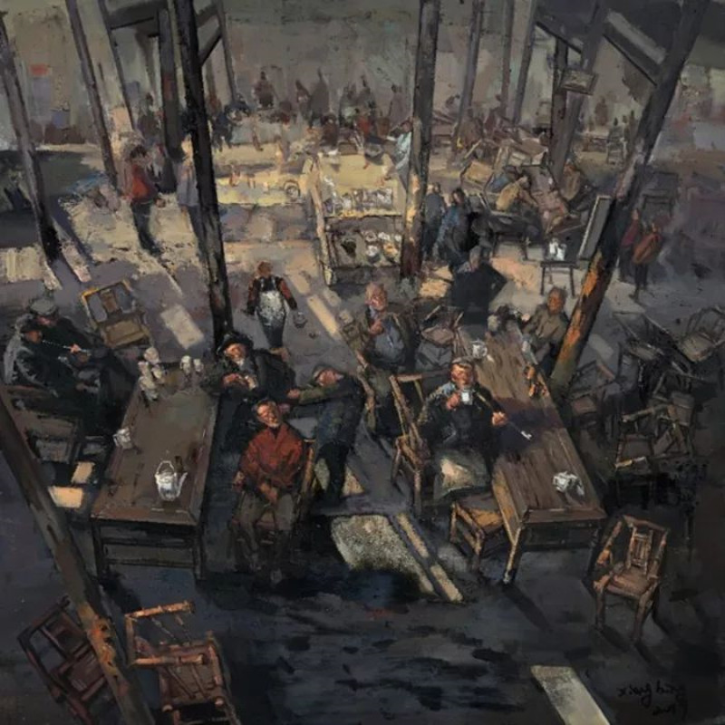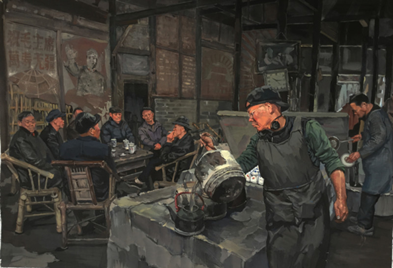 图:李向兵副教授的油画作品《茶馆·暖阳》入选第六届丝绸之路国际艺术节“今日丝绸之路国际美术邀请展”