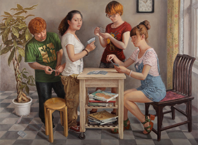 图:程瑞油画作品《千千牌局》入选“美丽新丝路,翰墨定西行”全国中国画油画作品展,获优秀奖(最高奖)