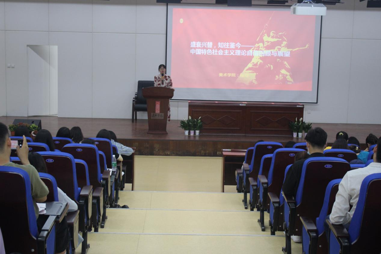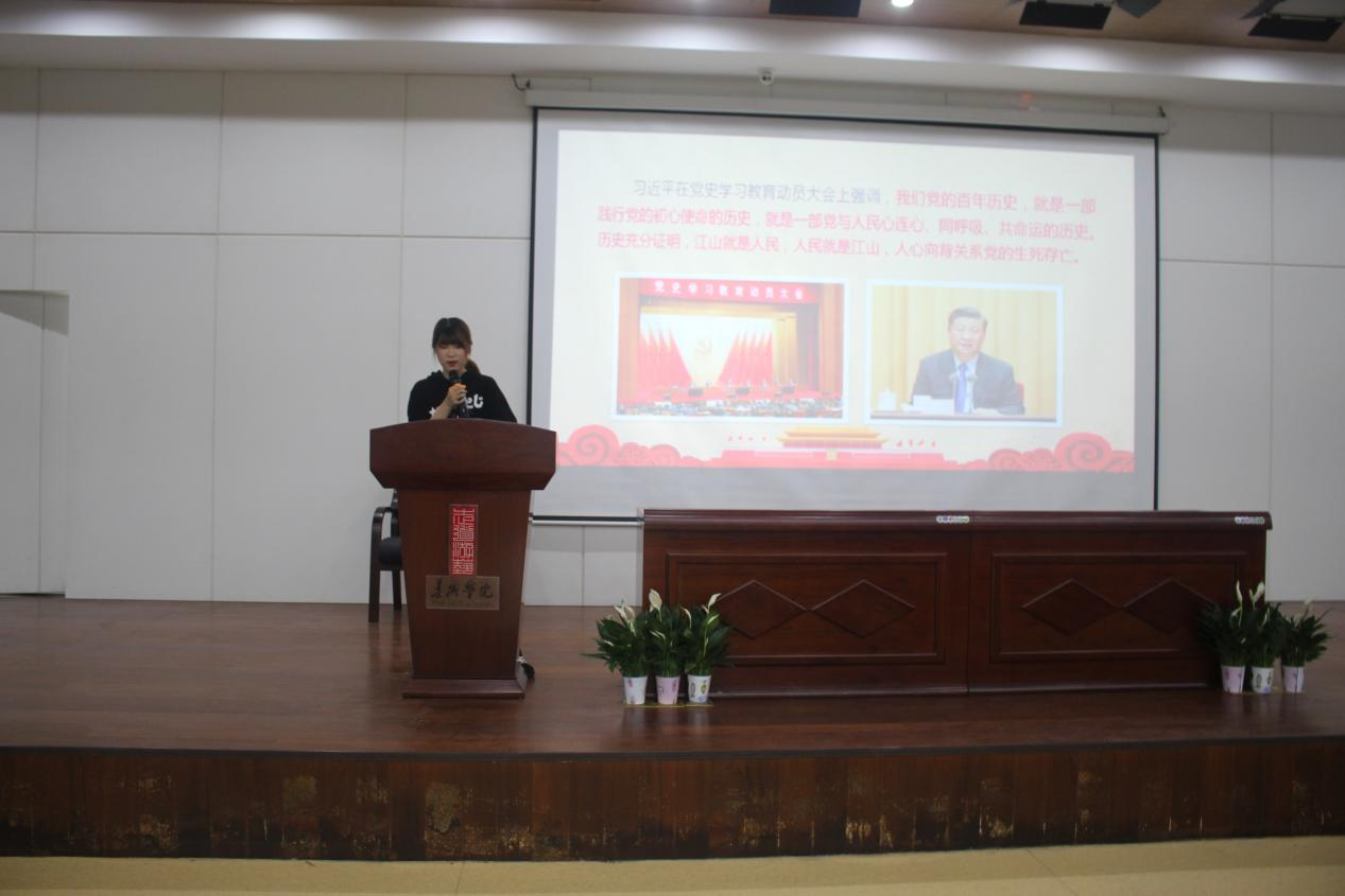 为深入学习贯彻落实习近平总书记在党史学习教育动员大会上的重要讲话精神,扎实推进共青团“学党史、强信念、跟党走”学习教育活动,在校团委的统一安排下,美术学院于2021年5月12日中午在美术学院学术报告厅举行了校级青年讲师团党史学习教育主题宣讲。美术学院分团委负责人程娅老师、美术学院2019级环境设计1班的金倩同学和历史文化与旅游学院的李才森老师及韩小花同学共同完成了此次宣讲。本次宣讲由程娅主持,美术学院近160名同学参加。